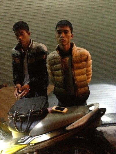 | Hai tên cướp bị bắt giữ tại chốt 141 sau khi vừa giật túi xách của người đi đường. |