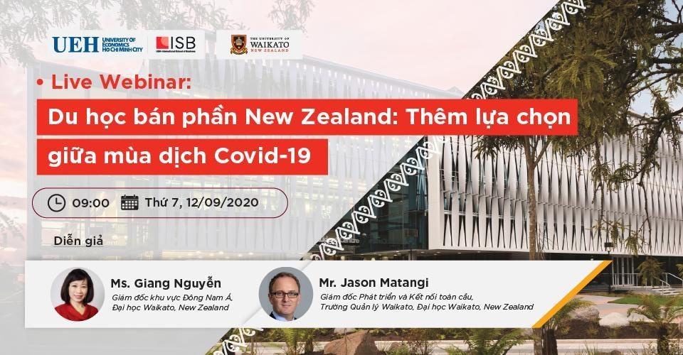 Để hỗ trợ phụ huynh và học sinh chọn giải pháp du học phù hợp, Đại học Waikato phối hợp cùng Viện ISB - Đại học Kinh tế TP.HCM tổ chức hội thảo trực tuyến: “Du học bán phần New Zealand: Thêm lựa chọn giữa mùa dịch Covid-19” vào 9h thứ bảy ngày 12/9.
