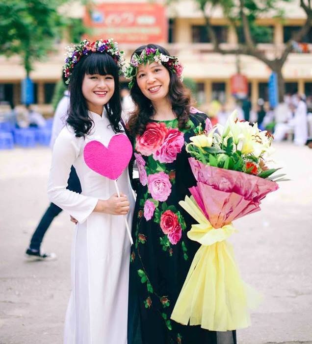 | Quỳnh Hương và cô giáo. (Ảnh: NVCC). |