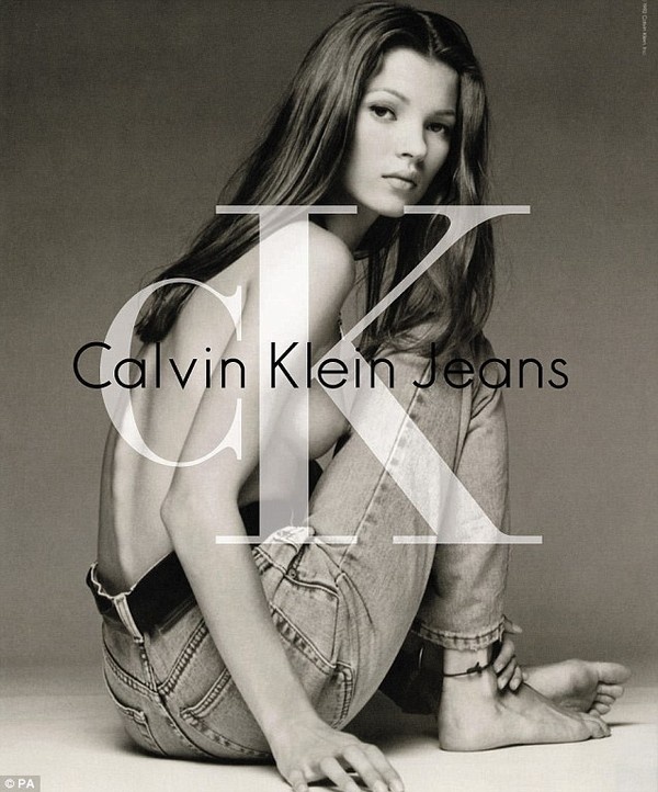 | Kate Moss cũng bước vào làng mốt khá sớm. Cô đã từng xuất hiện trên poster quảng cáo của Calvin Klein năm 14 tuổi. |