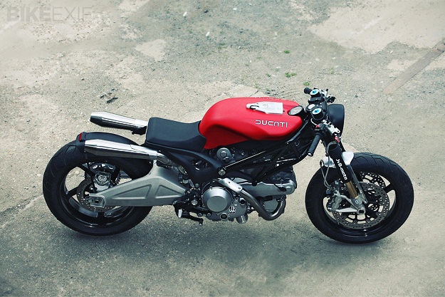 | Phiên bản độ Flat Red II, với kiểu dáng khác biệt rất nhiều so với chiếc Monster 1100 tiêu chuẩn. |