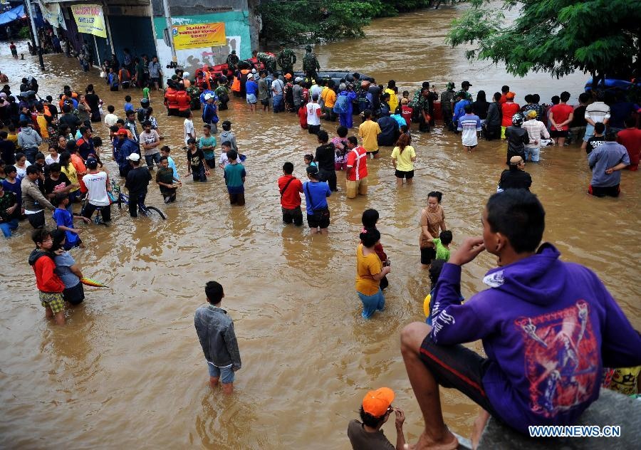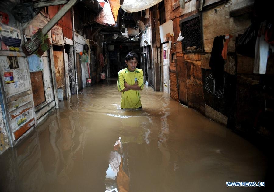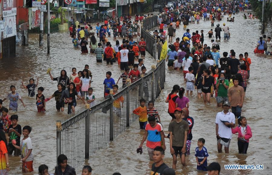 | Cơ quan Thảm họa Quốc gia Indonesia cảnh báo một trận lũ lớn hơn sẽ tiếp tục tấn công Jakarta trong ngày 20/1. Ảnh: Tân Hoa Xã |