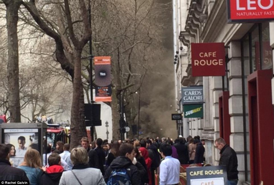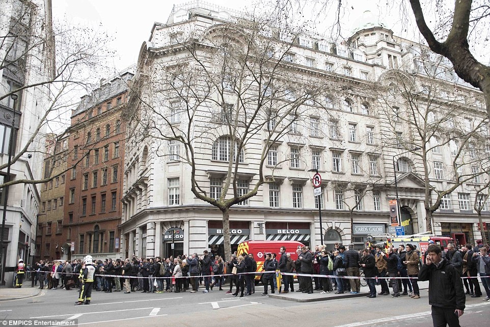 | Đám đông tràn xuống đường phố ở Holborn sau khi nhận hiệu lệnh sơ tán khỏi các tòa nhà quanh khu vực hiện trường. Ảnh: Rachel Galvin |