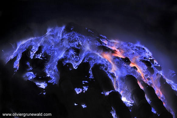 | Nhưng trên thực tế, đây là cảnh tượng tại núi lửa Kawah ljen tại Indonesia. Ảnh: Olivier Grunewald |