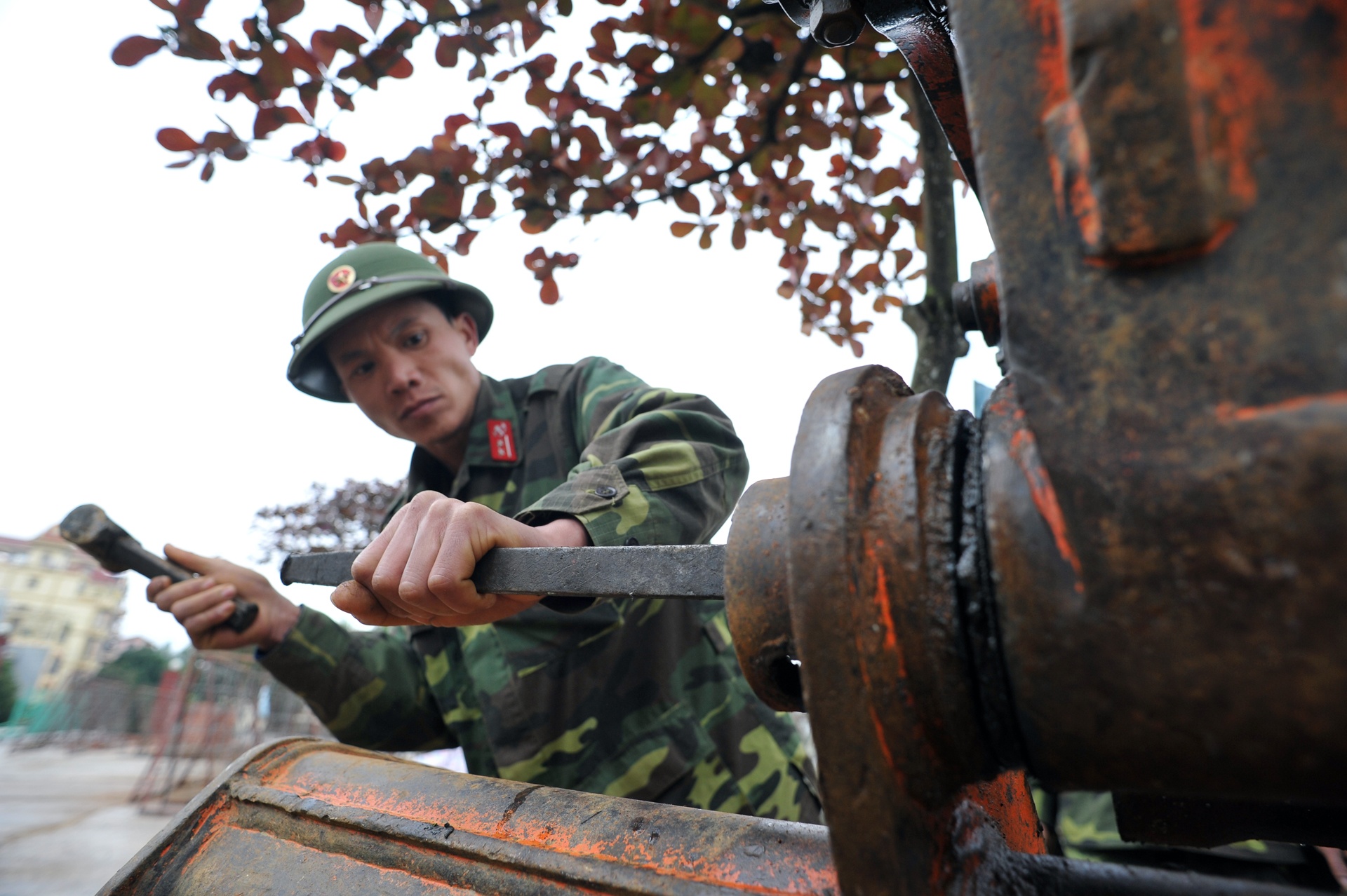 | Ngoài tập luyện, các chiến sĩ của đoàn còn phải thực hiện công việc huấn luyện, bảo quản và sửa chữa phương tiện, vũ khí, đảm bảo luôn trong tư thế sẵn sàng làm nhiệm vụ. |