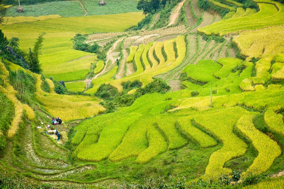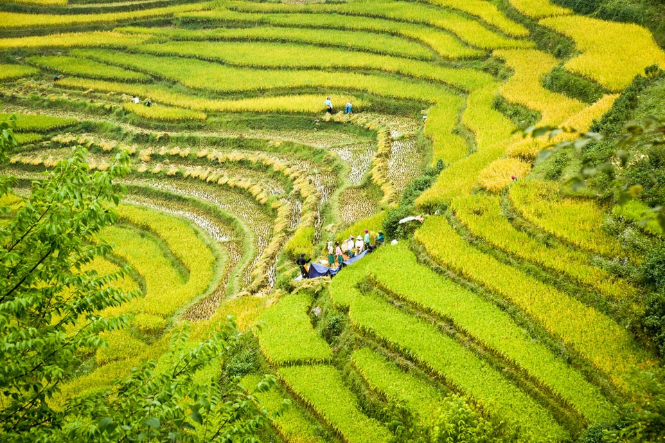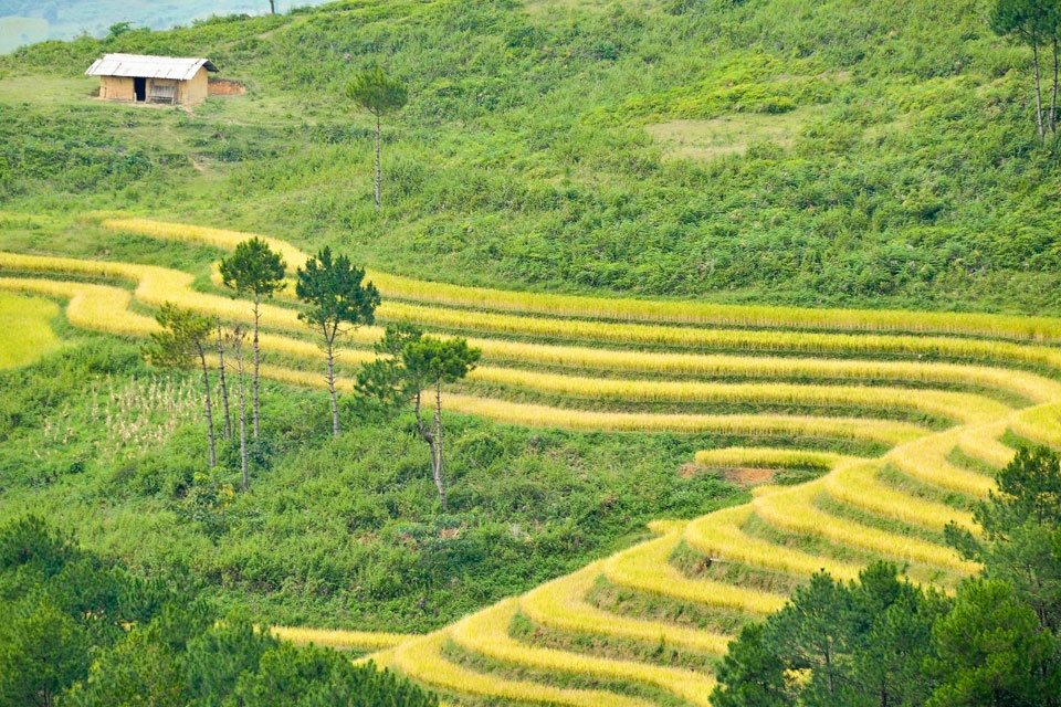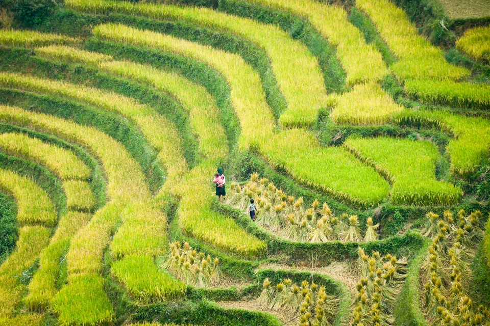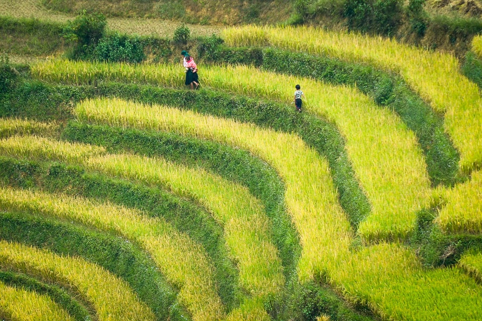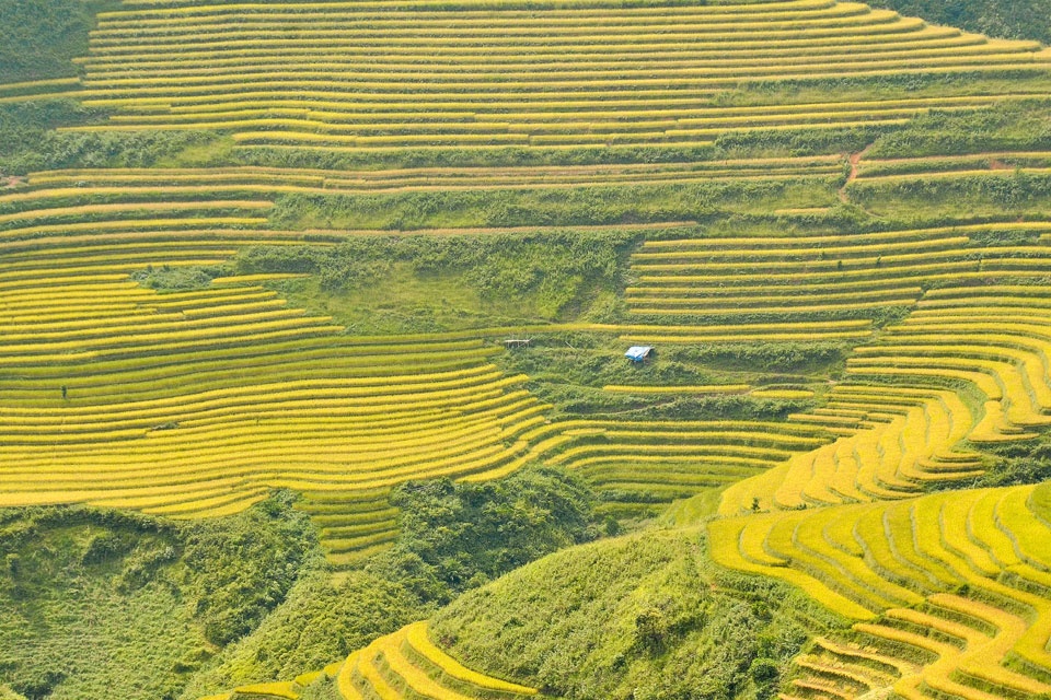 | Những thửa ruộng bậc thang nhuộm vàng cả không gian. |