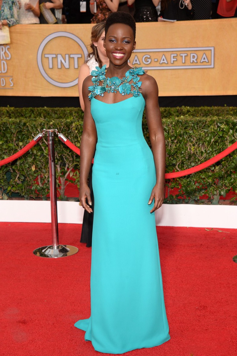 Lupita Nyong'o thường chọn cho mình những trang phục với màu sắc rực rỡ nhưng hoàn toàn trơn, không họa tiết.