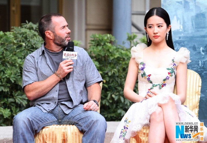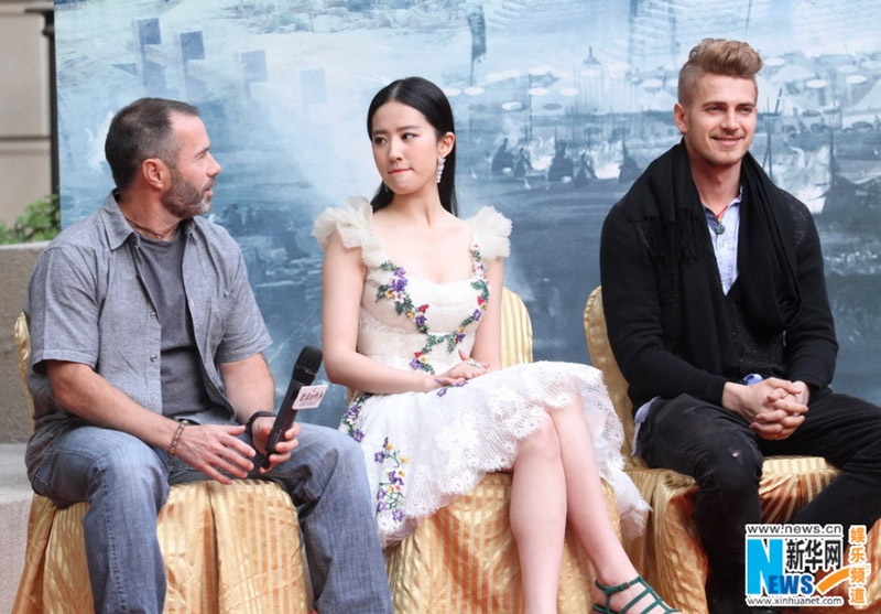 Lưu Diệc Phi bên đạo diễn Nick Powell (trái) và Hayden Christensen.