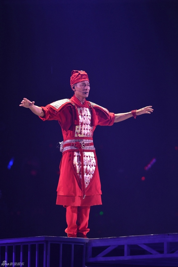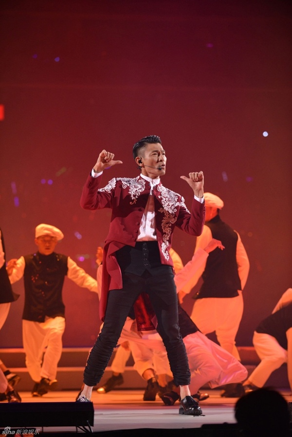 | Trong tạo hình vương tử hoàng gia châu Âu, Lưu Đức Hoa đã hòa quyện hết mình với âm nhạc, cống hiến cho người xem những lời ca bất hủ và màn biểu diễn đặc sắc. |