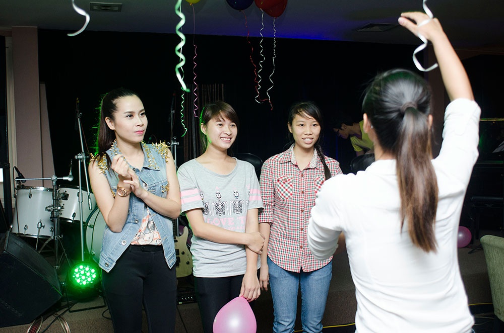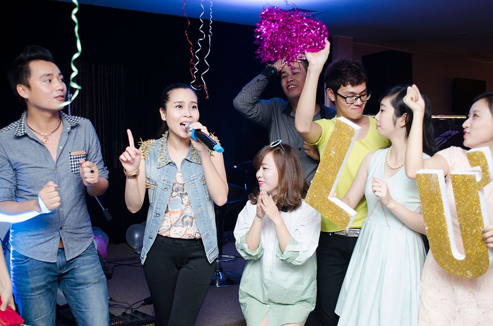 | Nữ ca sĩ hòa mình vào các trò chơi giao lưu với fan. |