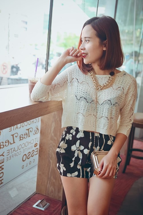 | Áo sơ mi mix cùng chân váy họa tiết mang đến sự trẻ trung cho bà mẹ một con. |