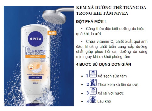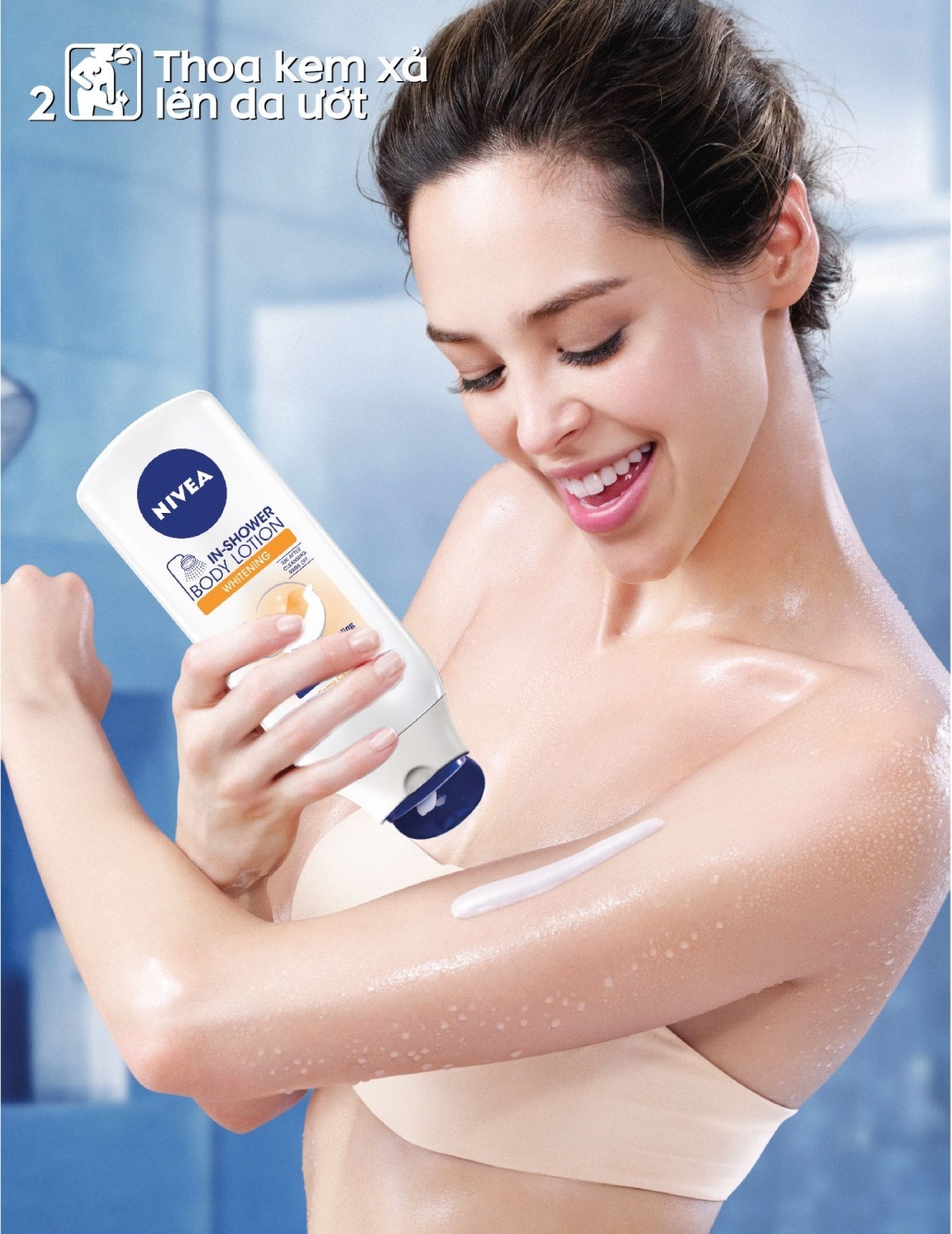Kem xả dưỡng thể được đặc chế với công thức đặc biệt, hoạt động hiệu quả trên da ướt nên bạn chỉ cần làm đẹp với kem xả dưỡng thể trắng da trong khi tắm với bốn bước cơ bản:
