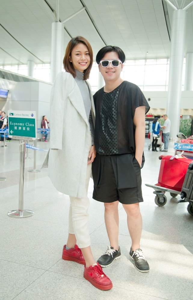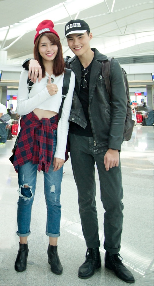 | Sáng ngày 10/2, nhà thiết kế trẻ cùng dàn mẫu Next Top Model đáp chuyến bay sang New York chuẩn bị hành trình tham dự show diễn thời trang nổi tiếng thế giới. Có mặt tại sân bay, nhà thiết kế ăn vận trẻ trung, hiện đại với áo voan và quần shorts ngắn thoải mái. Anh chụp ảnh cùng Mâu Thanh Thủy - Quán quân Vietnam's Next Top Model 2013 - người sẽ trình diễn các thiết kế của Lý Giám Tiền trên sàn thời trang quốc tế. Cô tỏ ra háo hức khi nhận lời mời tham gia sự kiện này. |