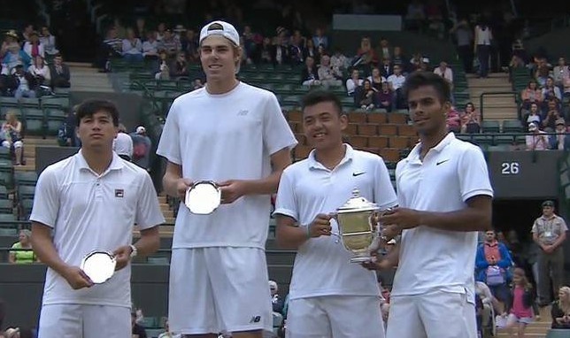 | Hoàng Nam và Nagal xứng đáng đăng quang nội dung đôi nam Wimbledon trẻ. Ảnh: Twitter. |