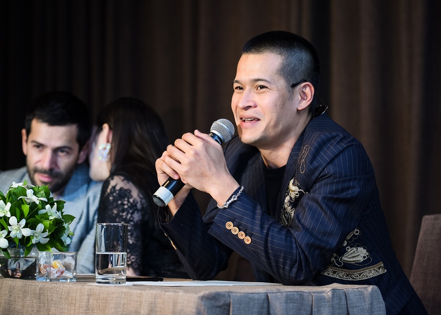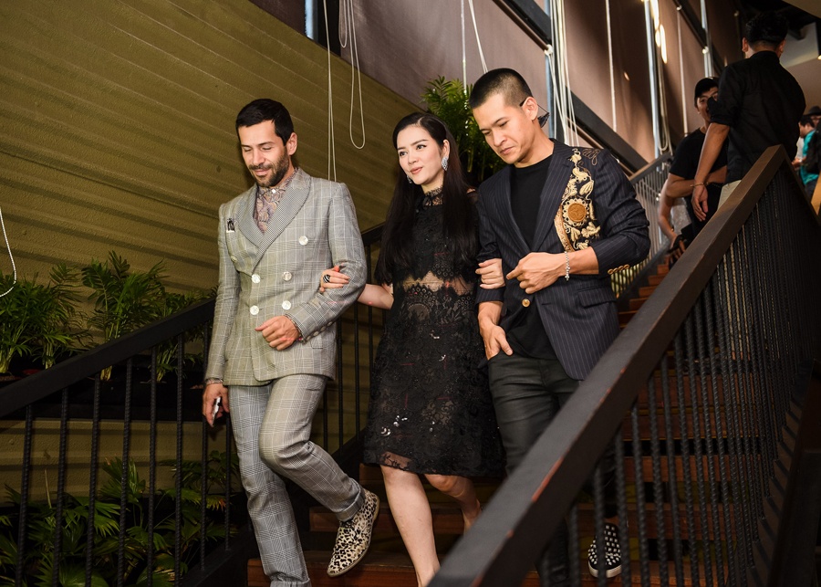 | Cựu Đại sứ Du lịch Việt Nam được Việt Tú và NTK Alexis Mabille tháp tùng đến sự kiện. |
