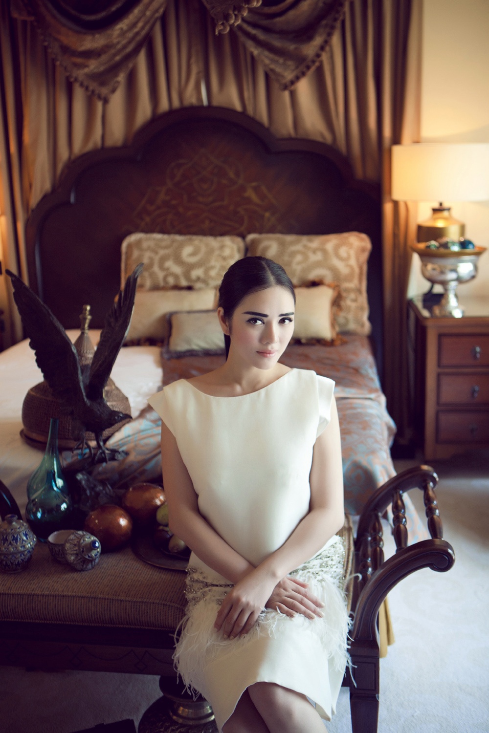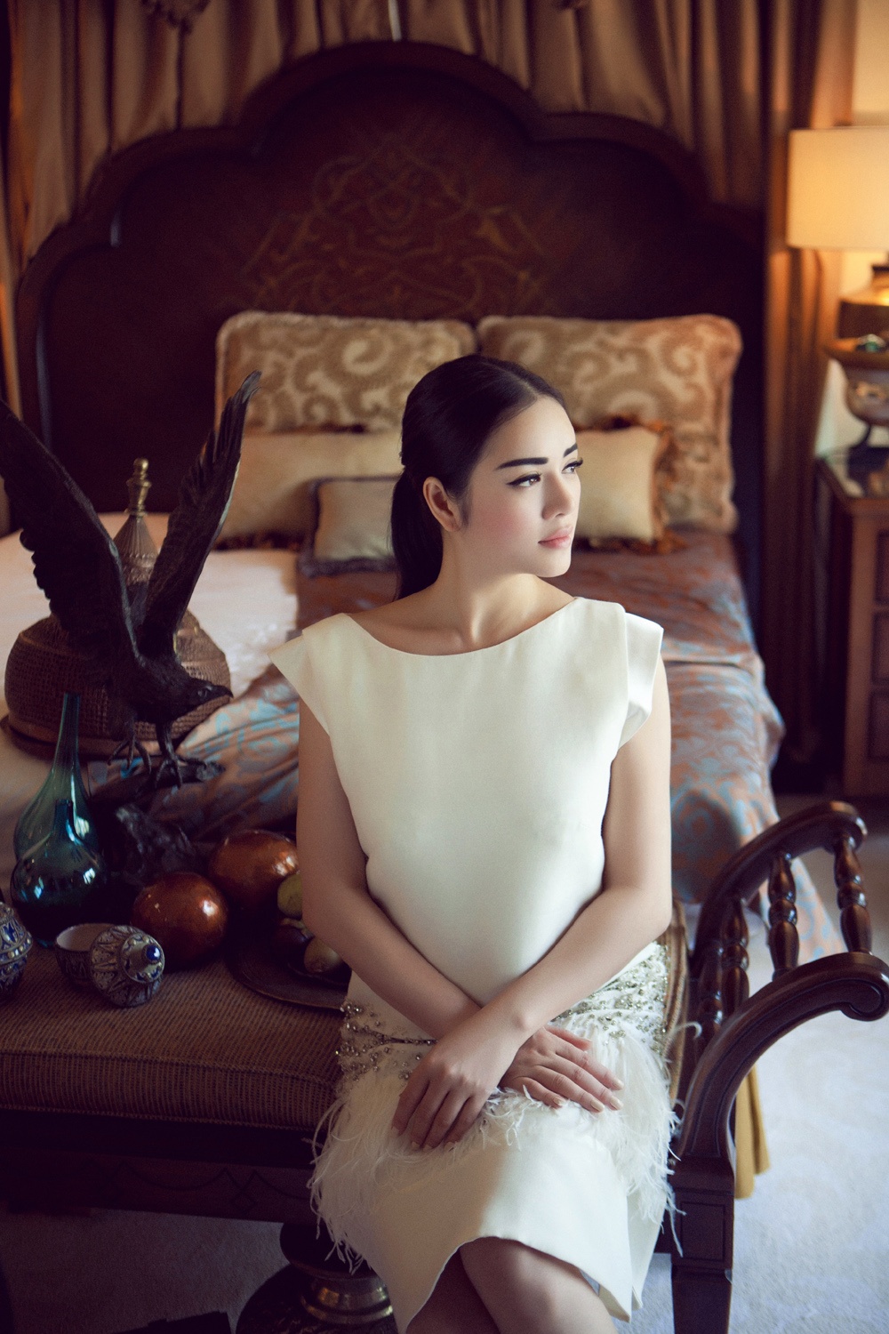 Trong khung ảnh thời trang mới, ''kiều nữ hàng hiệu'' hóa thân với hình ảnh nữ tính, trang nhã. Đây cũng là gu thời trang mà cô hướng đến trong suốt hơn một năm nay. Hình ảnh nền nã phần nào giúp cựu đại sứ du lịch lấy được thiện cảm của người xem.