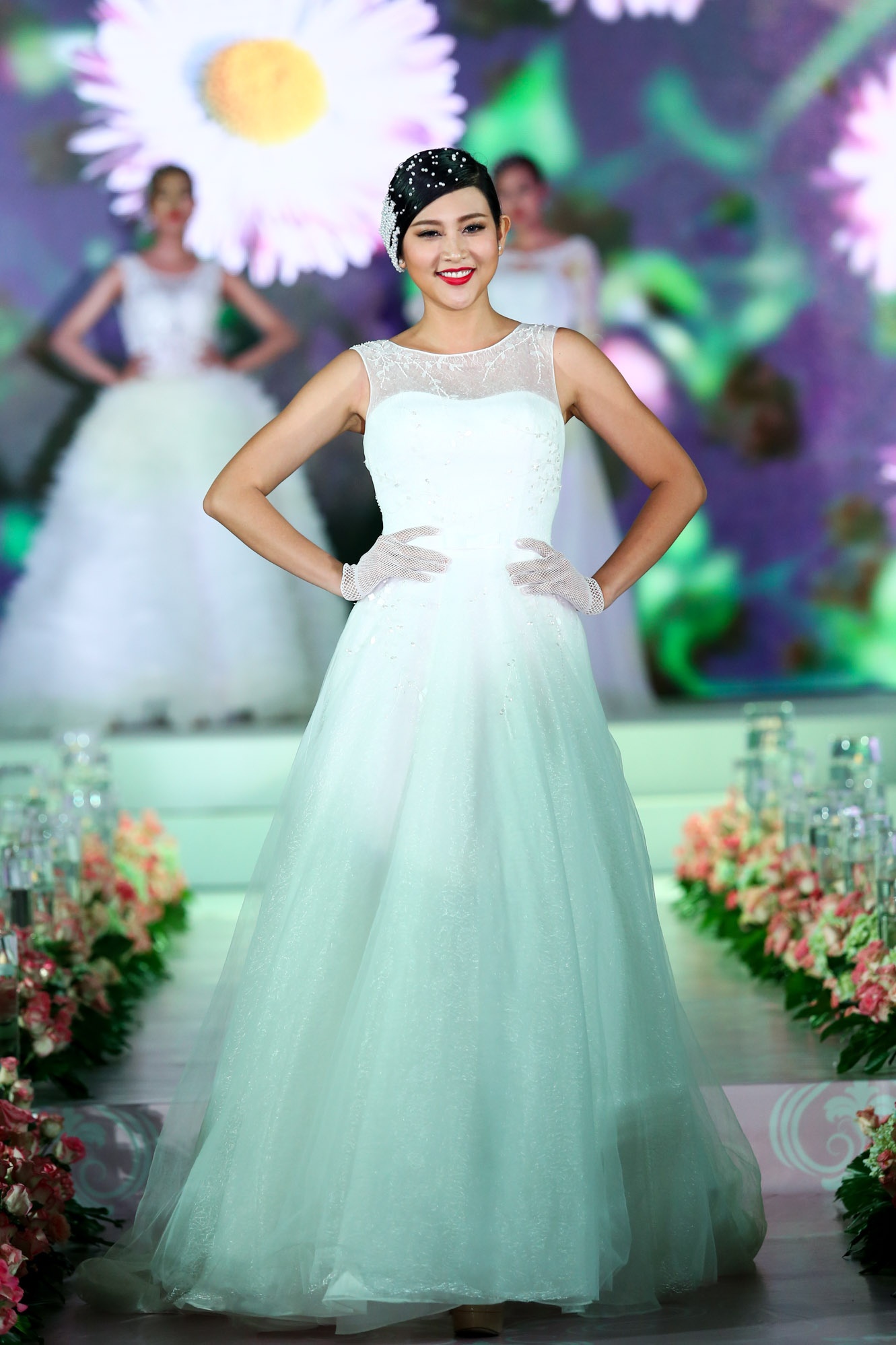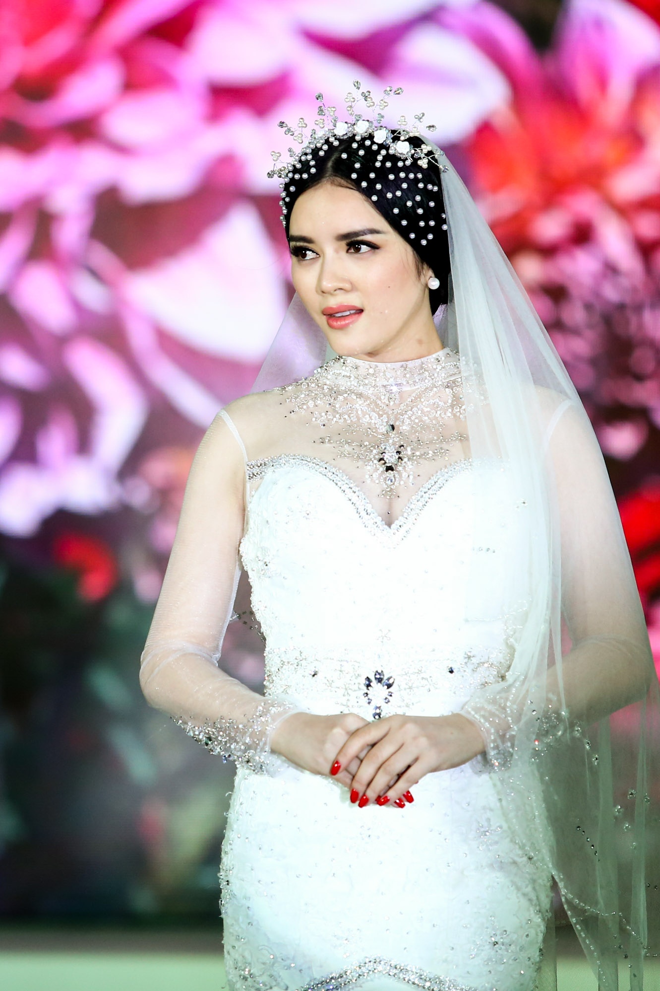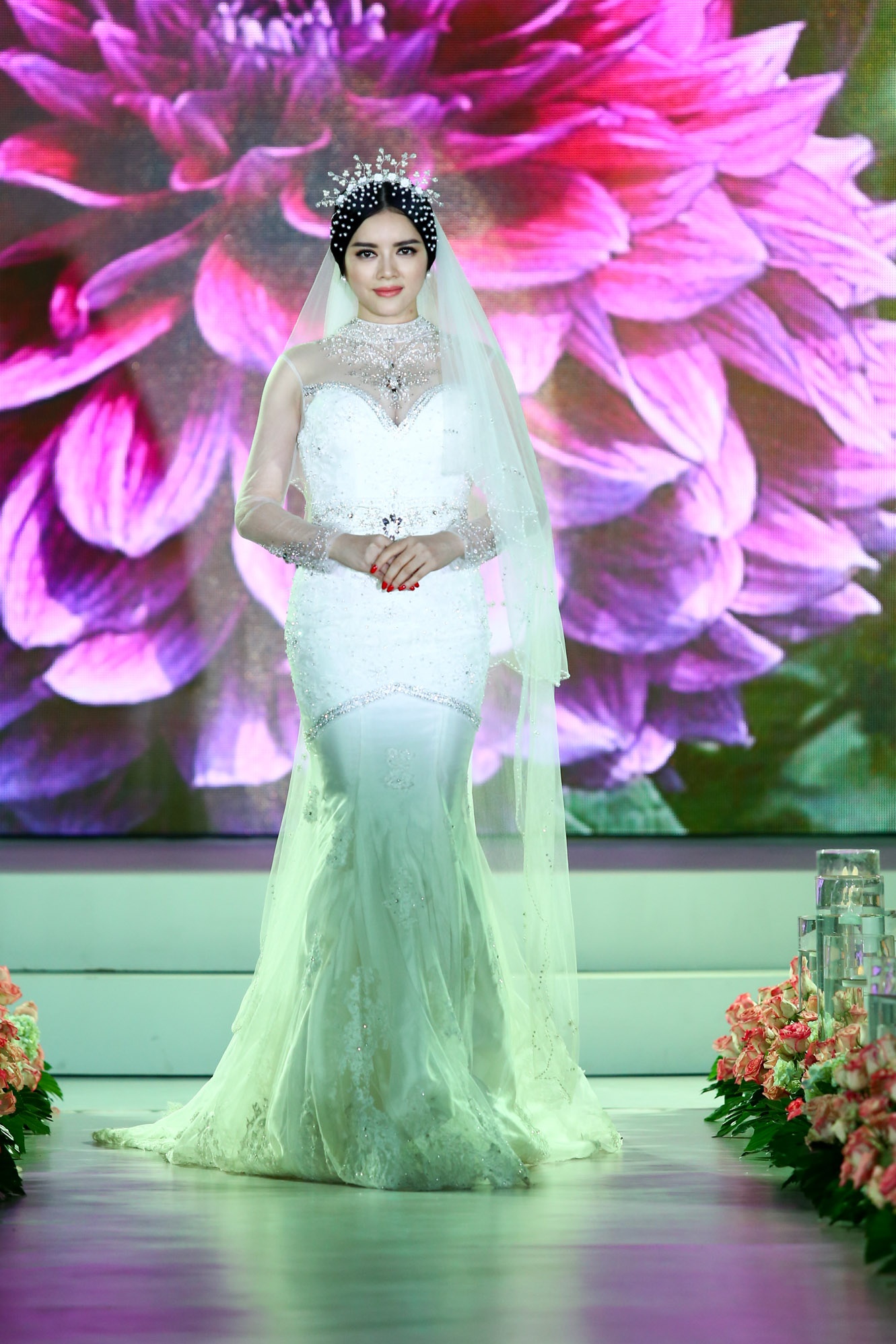 | Trong một chương trình thời trang diễn ra vào ngày 11/5, Lý Nhã Kỳ đảm nhận vai trò người mẫu thể hiện bộ sưu tập áo cưới mới nhất của chuyên gia trang điểm Minh Lộc. |
