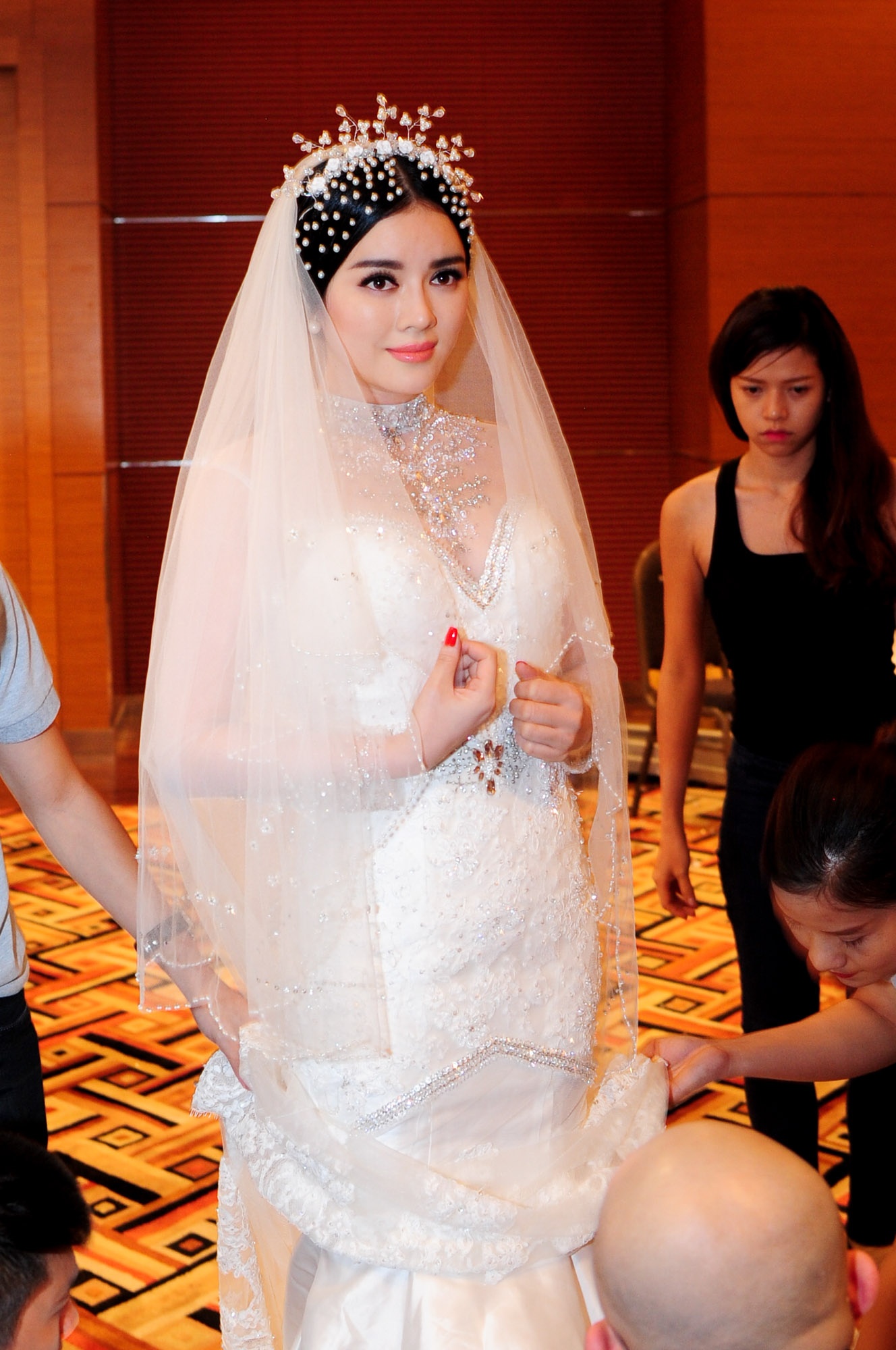 | Bộ váy cưới sang trọng, quyến rũ phù hợp với hình ảnh kiêu sa của Lý Nhã Kỳ. |