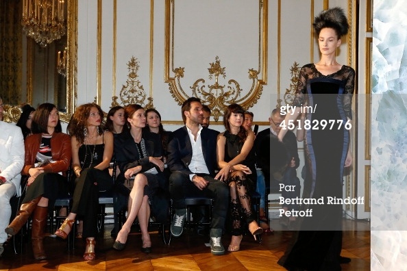 | Nam diễn viên Raphael Personnaz ăn vận lịch lãm đến dự show cùng Audrey Ismael và Simon Buret. |