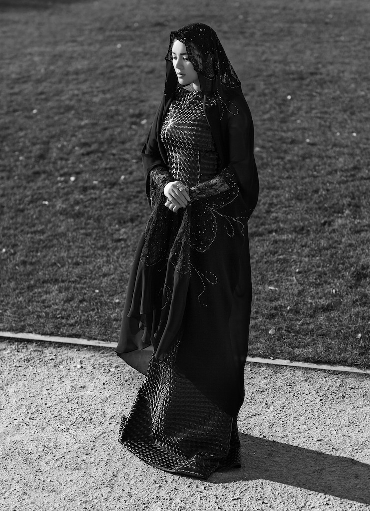 | Khăn voan phối cùng váy liền kín đáo là nét đặc trưng của thiếu nữ các thế kỷ trước. |