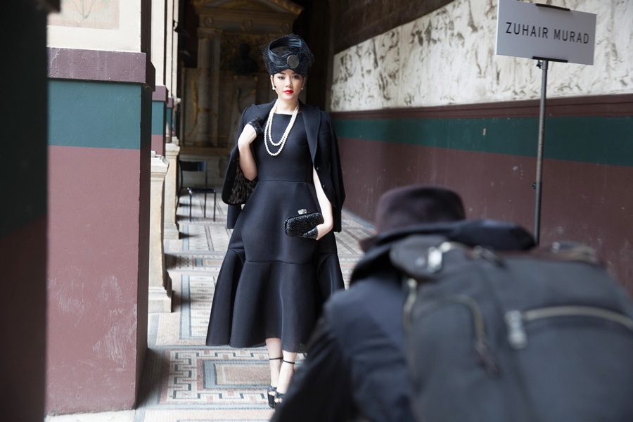 Phong cách thời trang cổ điển, quý tộc giúp cựu Đại sứ du lịch Việt Nam tự tin khi kết thân với người đẹp của điện ảnh Hoa ngữ - Diêu Tinh Đồng tại tuần lễ thời trang Paris.