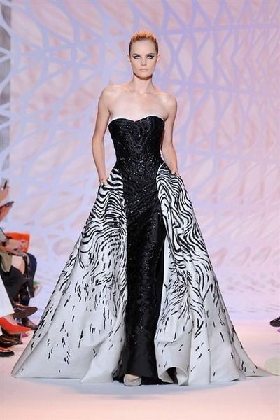 | Zuhair Murad sử dụng tông màu trơn, tối giản nhưng đặc tả ở họa tiết và chất liệu mềm mại, uyển chuyển.