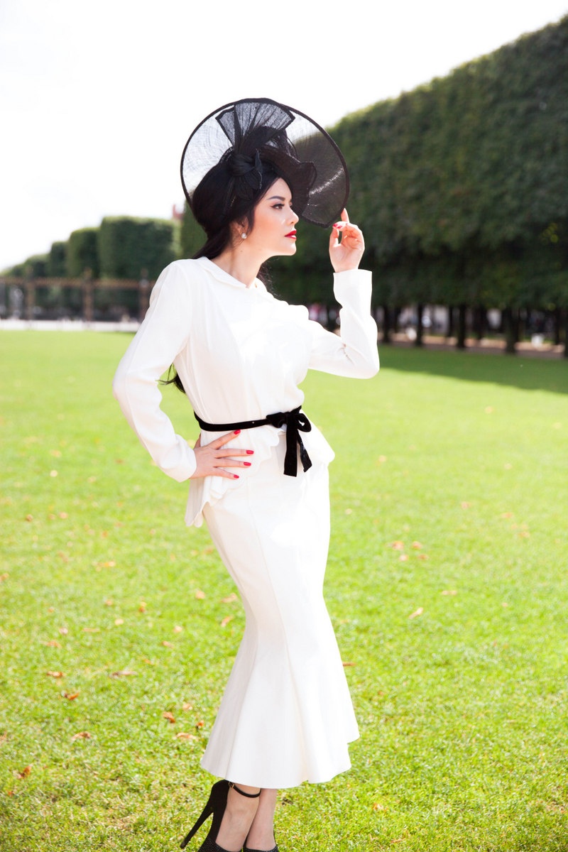 | Bộ váy gam màu trắng từng được người đẹp diện khi đảm nhận vai trò giám khảo chương trình Fashion Star (Ngôi sao thiết kế Việt Nam) vào năm ngoái được sử dụng lại khá tinh tế trong bộ ảnh. Thiết kế có phom dáng cổ điển không chỉ phù hợp với định hướng hình ảnh của Lý Nhã Kỳ mà còn khá tiệp tông cùng bối cảnh lãng mạn. |
