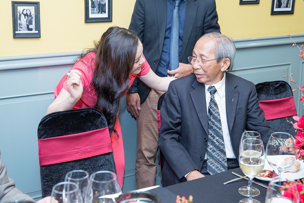 Ngưỡng mộ tài năng của nhạc sĩ sinh năm 1940, diễn viên "Mùa hè lạnh" mời ông tham gia biểu diễn tại showroom trang sức kim cương.