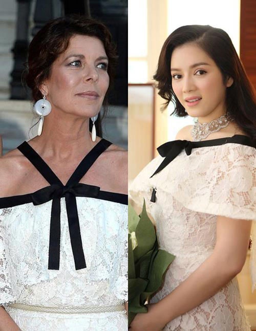 | Công chúa Monaco diện chiếc váy tương tự của Lý Nhã Kỳ trong một sự kiện gần đây. |