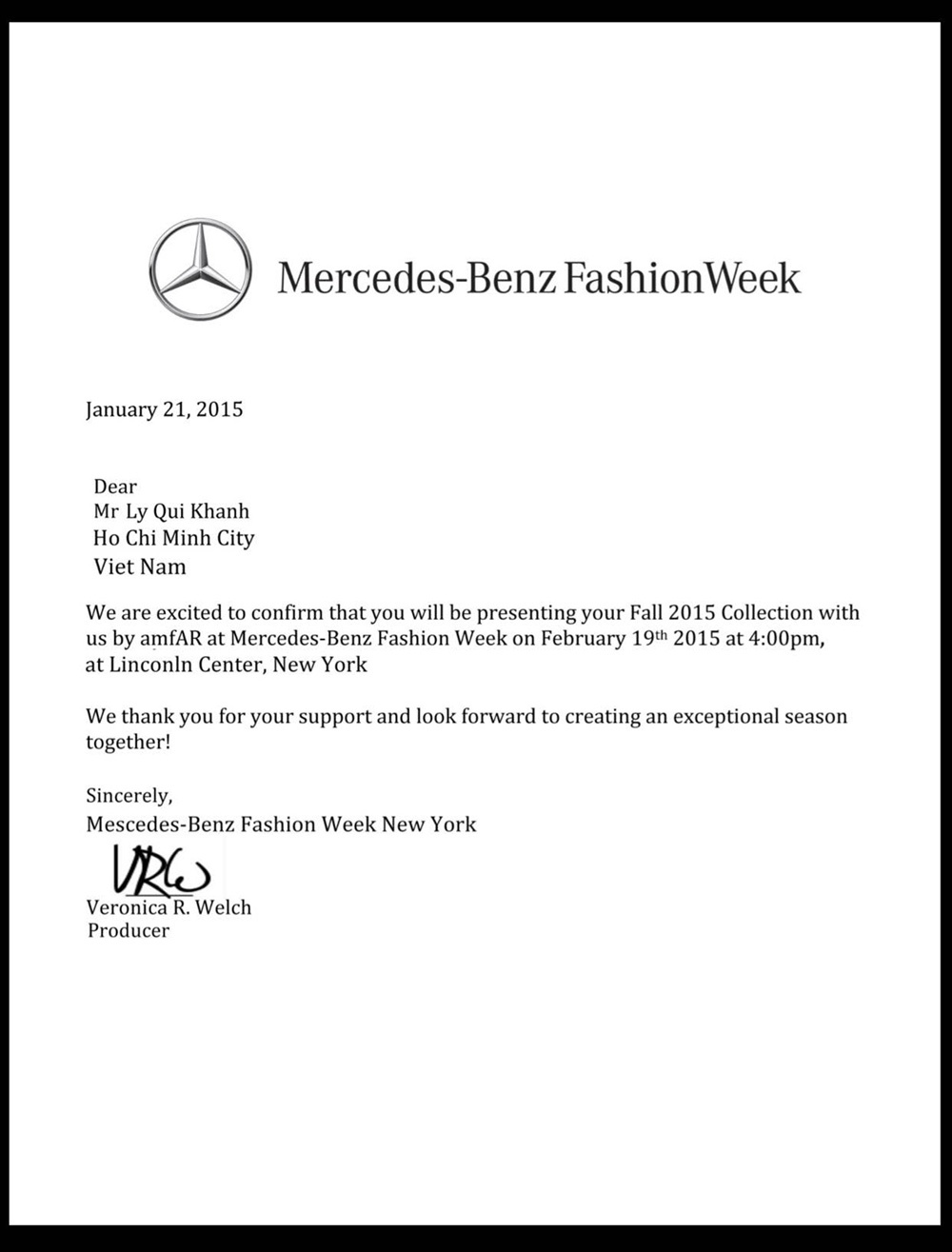 Nhà thiết kế Lý Quí Khánh vừa được mời tham dự show diễn thu đông 2015 nằm trong khuôn khổ Mercedes BenZ Fashion Week hay còn gọi là New York Fashion Week vào tháng 2/2015. Anh là số ít NTK Việt Nam và châu Á được mời tham dự tuần lễ thời trang danh tiếng của nước Mỹ.