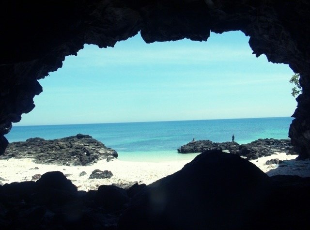 Hôm sau, tôi được một cậu nhóc, con của anh Mai, dẫn tôi đi tham quan khắp nơi trên đảo. Phải công nhận đảo Lý Sơn đẹp thật. Tôi tranh thủ đi thăm chùa Hang, tượng phật Quan Âm, cổng Tò Vò… không chỗ nào không tuyệt vời. Nhưng đẹp nhất chắc phải là đảo Bé, một hòn đảo nhỏ cách Lý Sơn hơn 2 hải lý, một nơi hoang sơ và đẹp một cách lạ kỳ. Khoảng 8 giờ sáng sẽ có một chuyến tàu ra đó và quay lại lúc 3-4 giờ chiều.
