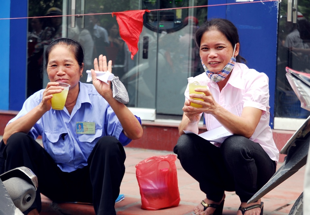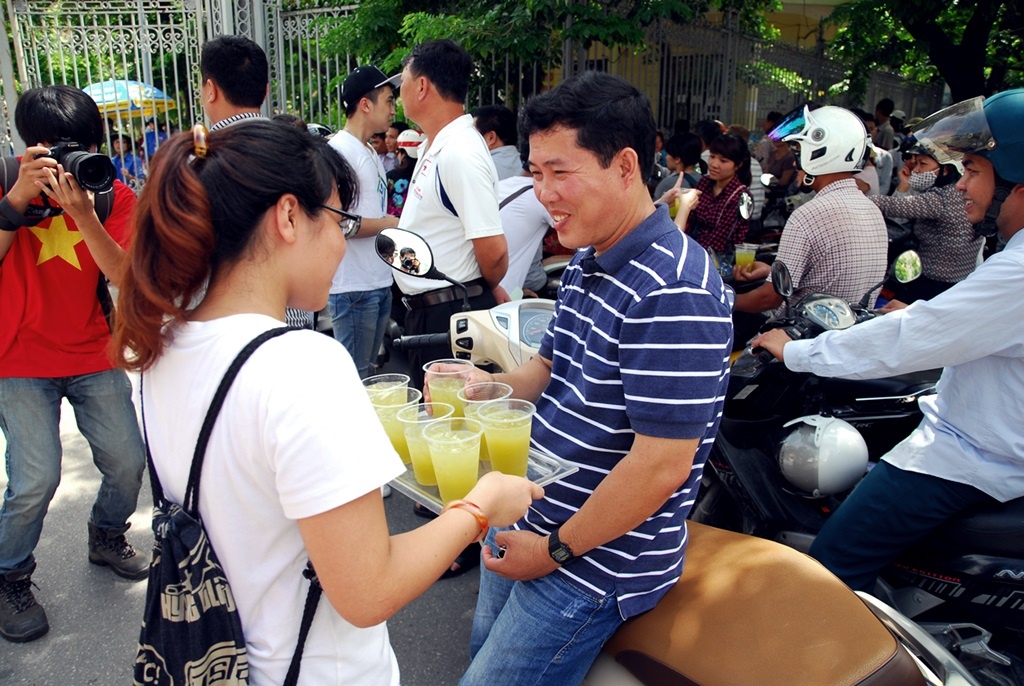 | Nước mía cho các bậc phụ huynh đứng ngoài chờ con làm bài thi sẽ được giải tỏa cơn khát. |