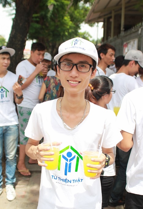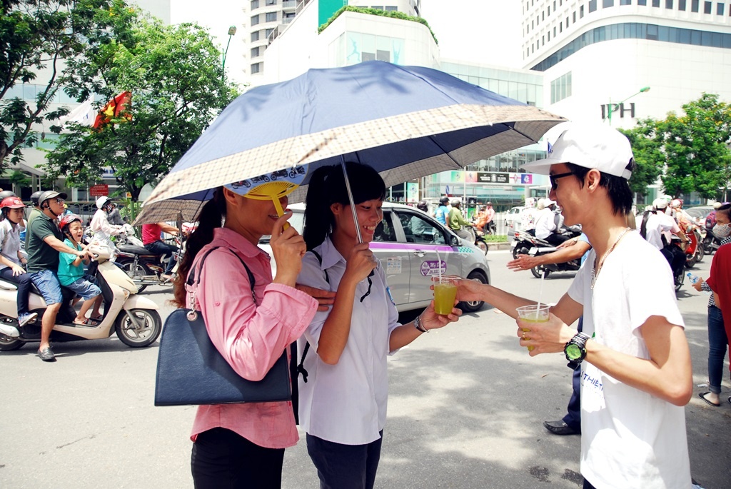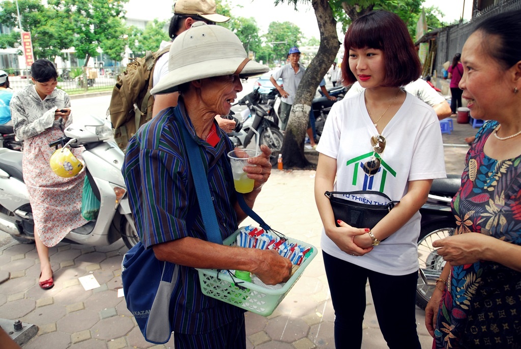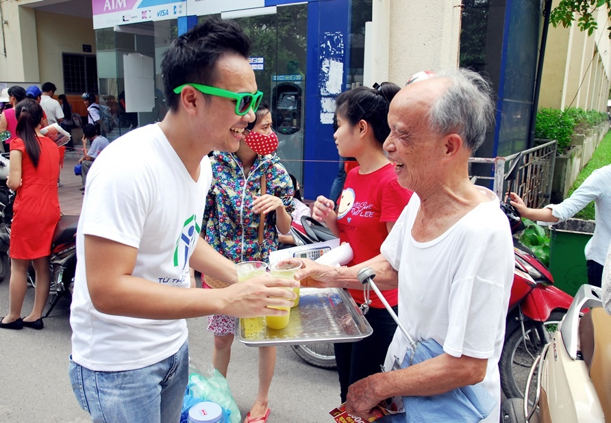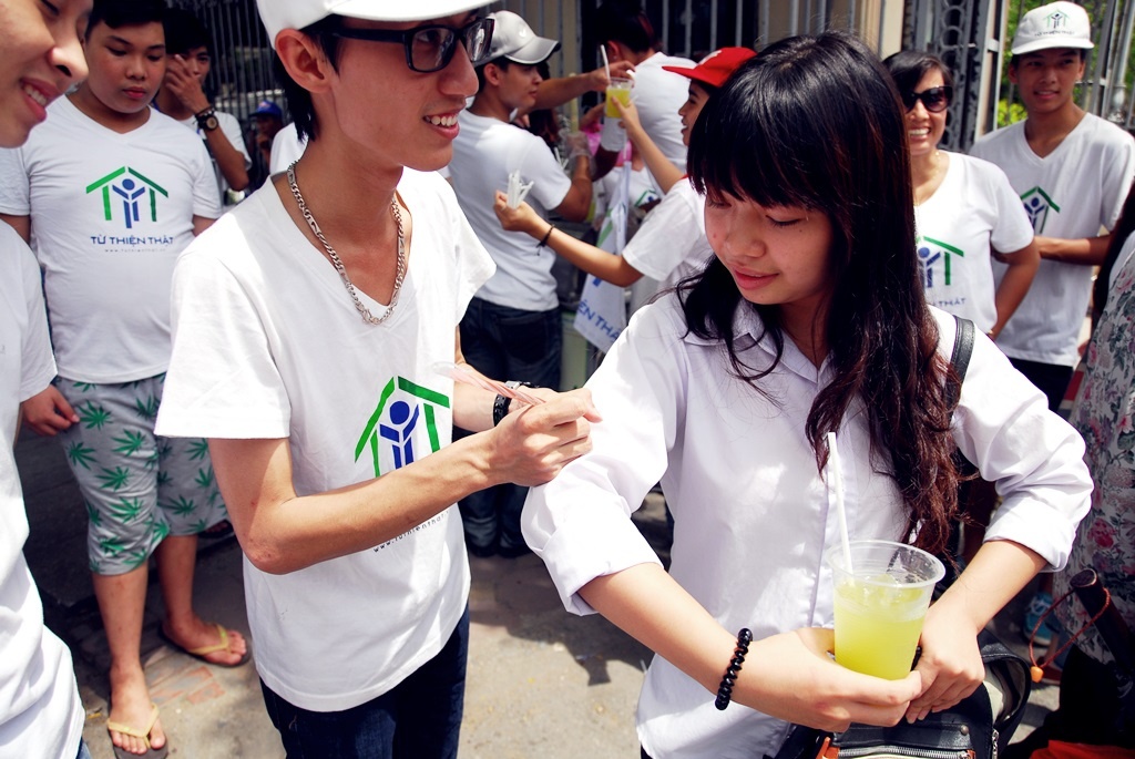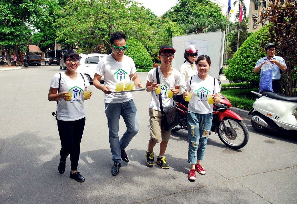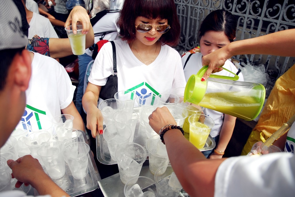 | Các bạn trẻ trong Câu lạc bộ Từ thiện thật rất vui vì giúp đỡ mọi người giải tỏa cơn khát |
