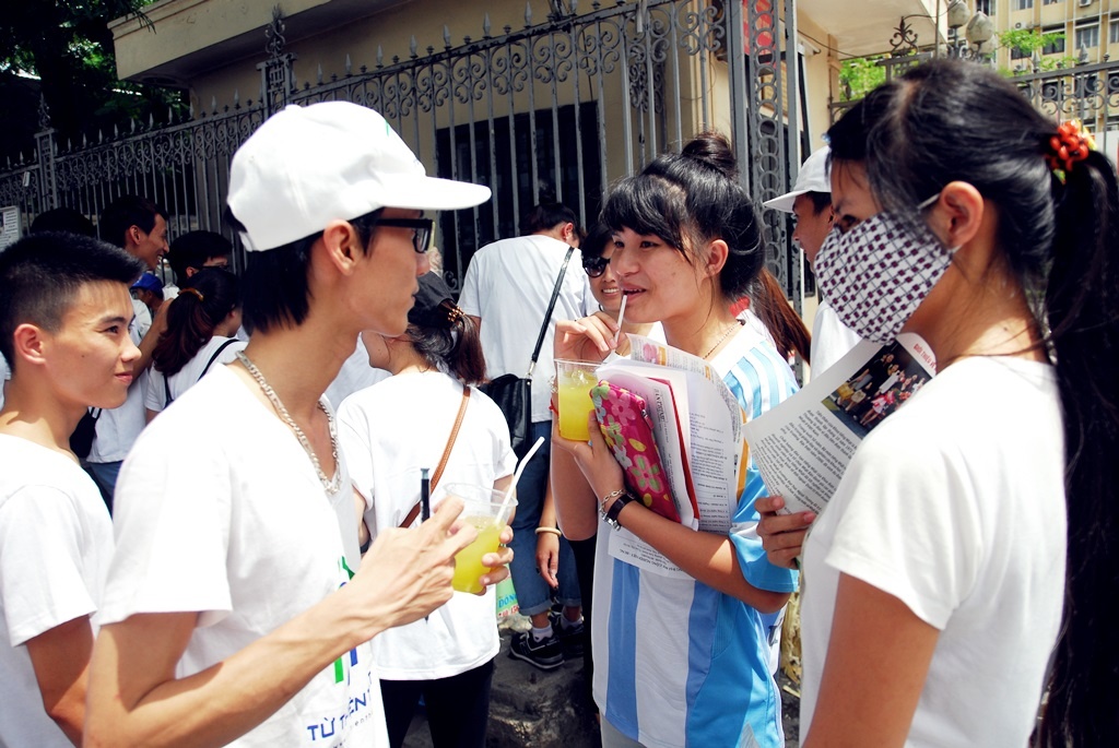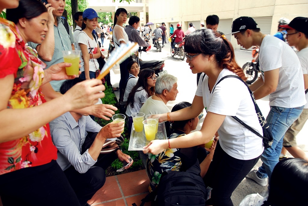 | Không chỉ phục vụ các thí sinh và phụ huynh, CLB còn phát thêm cho những người qua đường khu vực này |