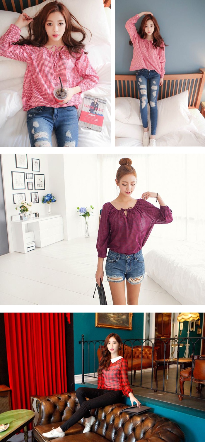 | Cách đơn giản nhất để sở hữu một chiếc áo kẻ ca rô mà không phải là sơ mi, đó là hãy tìm đến những chiếc áo kiểu, được thiết kế trẻ trung, với các kẻ ô to hoặc nhỏ khác nhau. |