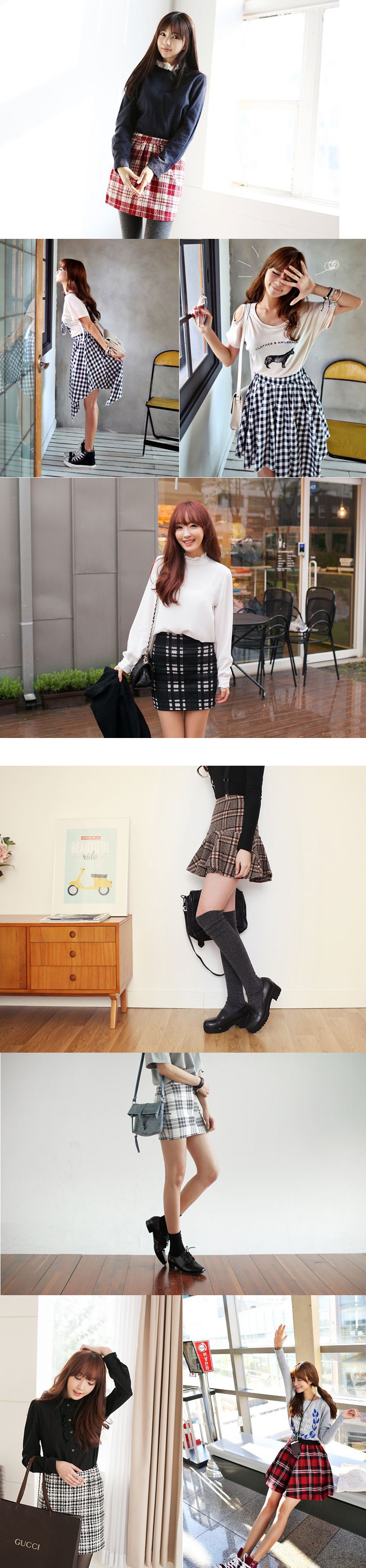 | Vì ca rô vốn đã khá rối mắt, nên khi phối áo hay áo khoác với váy ca rô, bạn nên chọn những chiếc áo có kiểu dáng đơn giản, đơn sắc hoặc được trang trí, cắt cúp không quá cầu kỳ. |