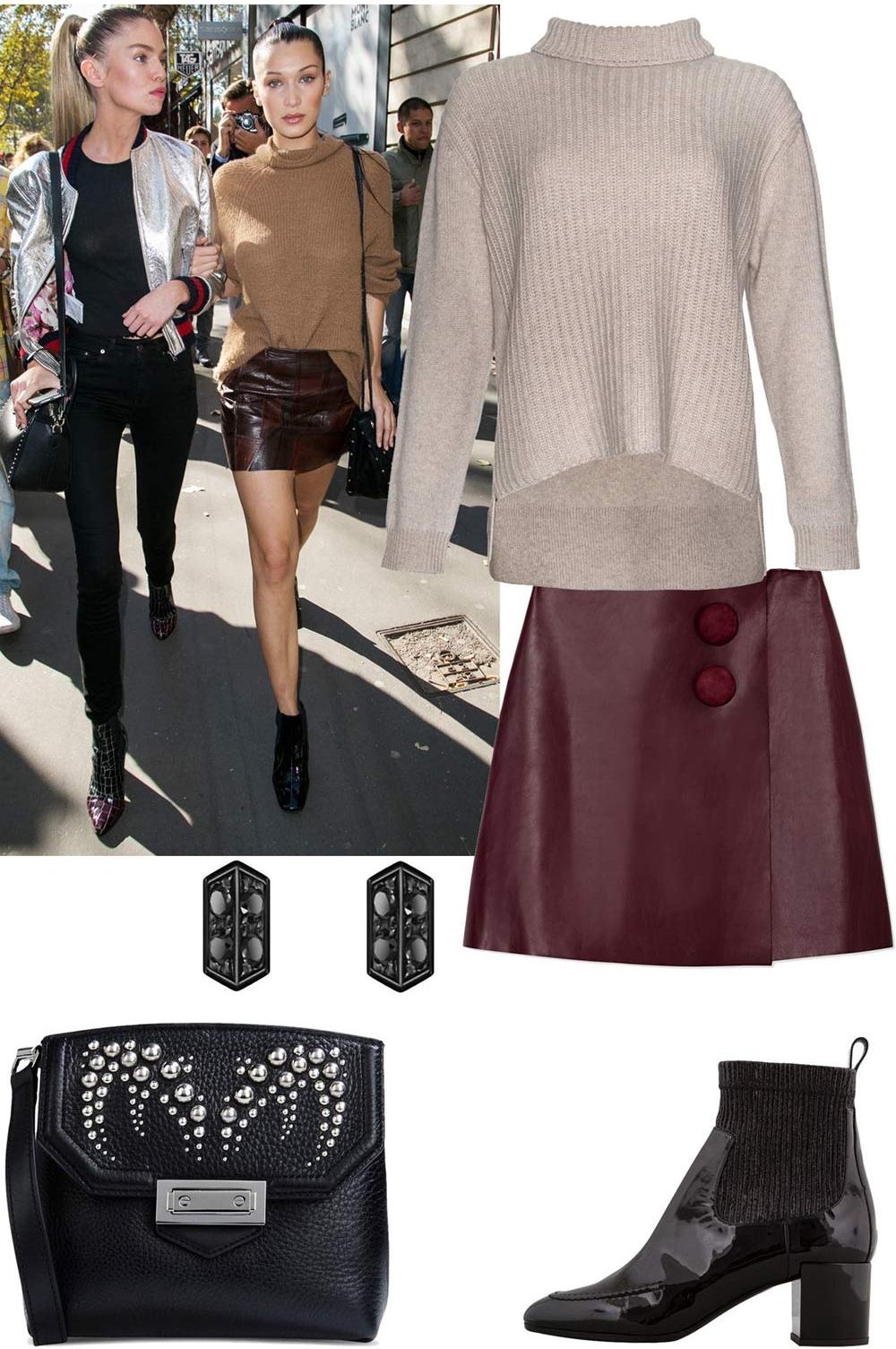 Dạo phố: Áo len cổ lọ đi cùng váy mini da là sự kết hợp hoàn hảo cho thời trang dạo phố. Với lựa chọn này, bạn chỉ cần phối cùng chiếc túi mini và đôi bốt cổ thấp để hoàn thiện set đồ. Sơ vin một nửa áo mang lại vẻ ngoài trẻ trung và đôi chút nghịch ngợm.
