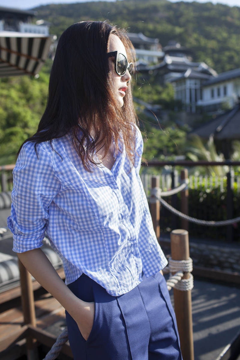 | Áo sơ mi và quần âu với những đường may cá tính là một trong những lựa chọn ưu tiên của Helly Tống khi du lịch. Chất vải mềm mại của áo và độ rộng rãi của quần giúp người mặc cảm thấy thoải mái trong việc di chuyển liên tục, cũng như phù hợp với mọi địa hình. |
