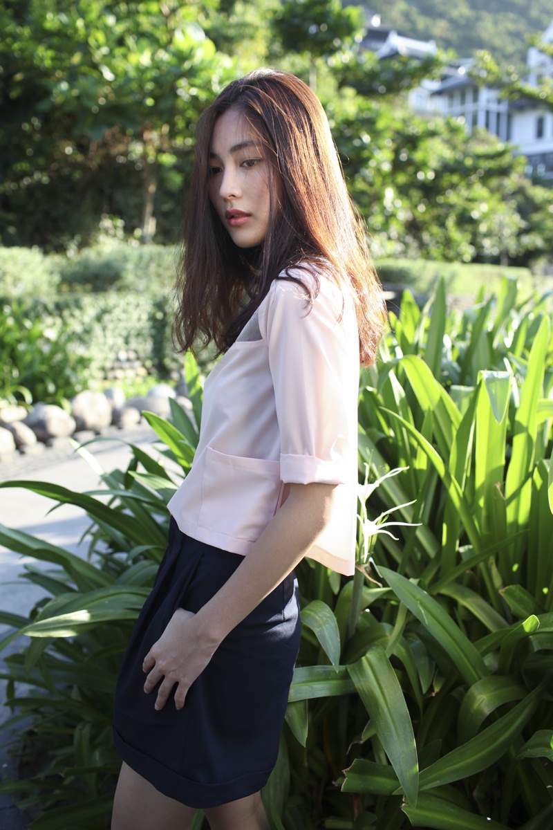 | Trong một set đồ khác, Helly chọn áo voan có màu sắc pastel thanh lịch. Điểm nhấn của áo nằm ở những chiếc túi bên hông. |