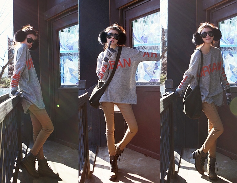 | Những chiếc áo sweater cũng được tận dụng và biến hóa khi đi cùng chân váy xòe và quần tất. Tạo vẻ ngoài thêm năng động bằng phụ kiện nón snapback và boots da. |