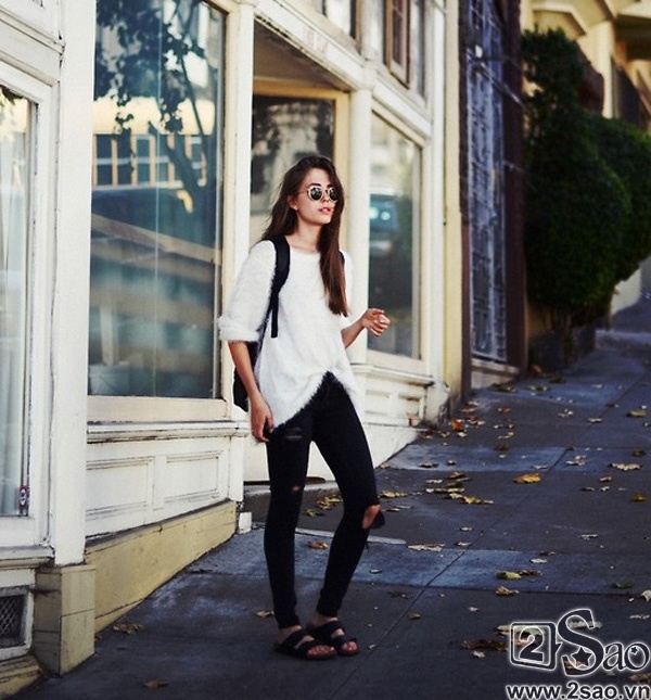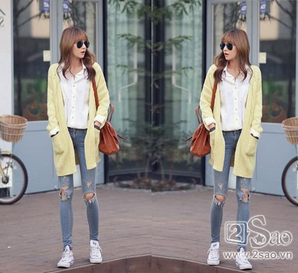 | Trong ngày thu, bạn có thể diện quần jeans rách đẹp mắt khi mix cùng áo phông, áo sơ mi, áo khoác nhẹ, áo len mỏng... vừa thoải mái lại trông rất sành điệu. |