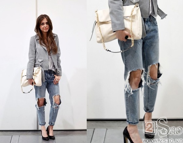| Quần jeans rách mang nét đẹp cá tính và bụi bặm nhưng không kém phần cuốn hút. |