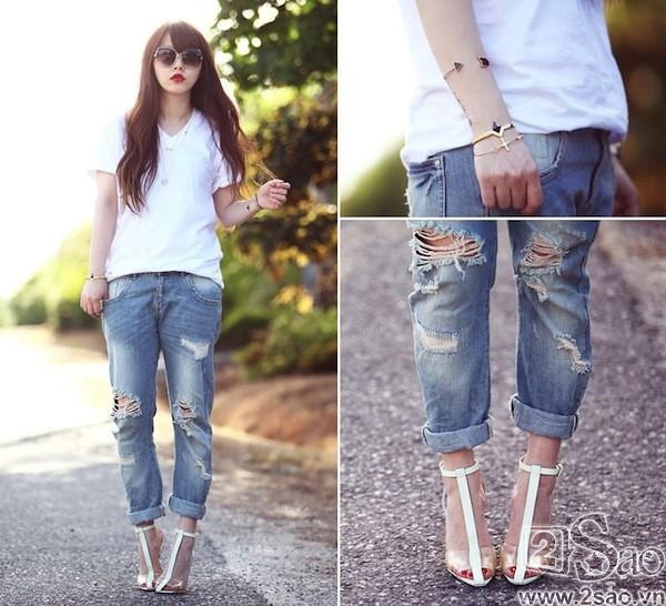 Quần jeans rách là món đồ dành cho những cô nàng thích thay đổi phong cách cá tính thay vì những bộ trang phục đơn thuần, dịu dàng hàng ngày.