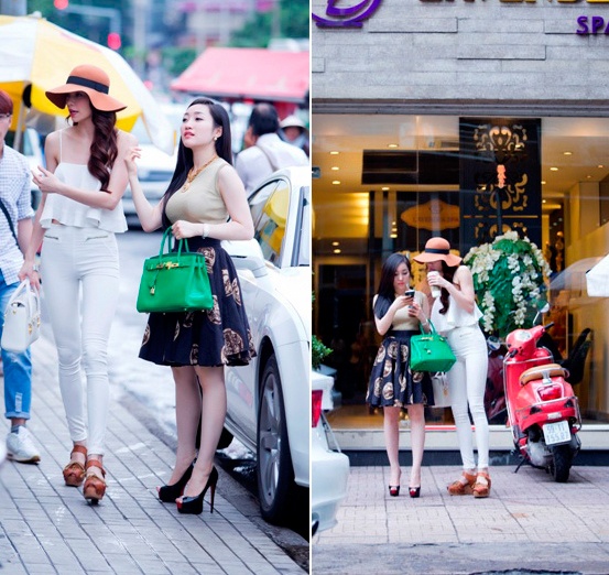 Hình ảnh Hà Hồ xuống phố đẹp mắt với phụ kiện tông nâu và set đồ trắng. Đặc biêt, quần jeans trắng dáng skinny giúp cô giấu được vóc dáng gầy gò.