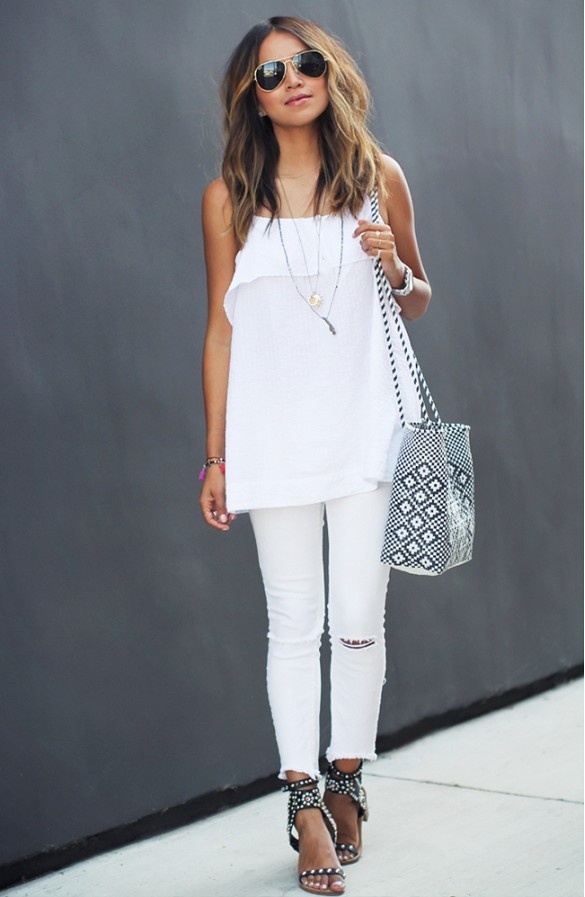 Dịu dàng xuống phố với cây trắng của jeans và áo 2 dây.