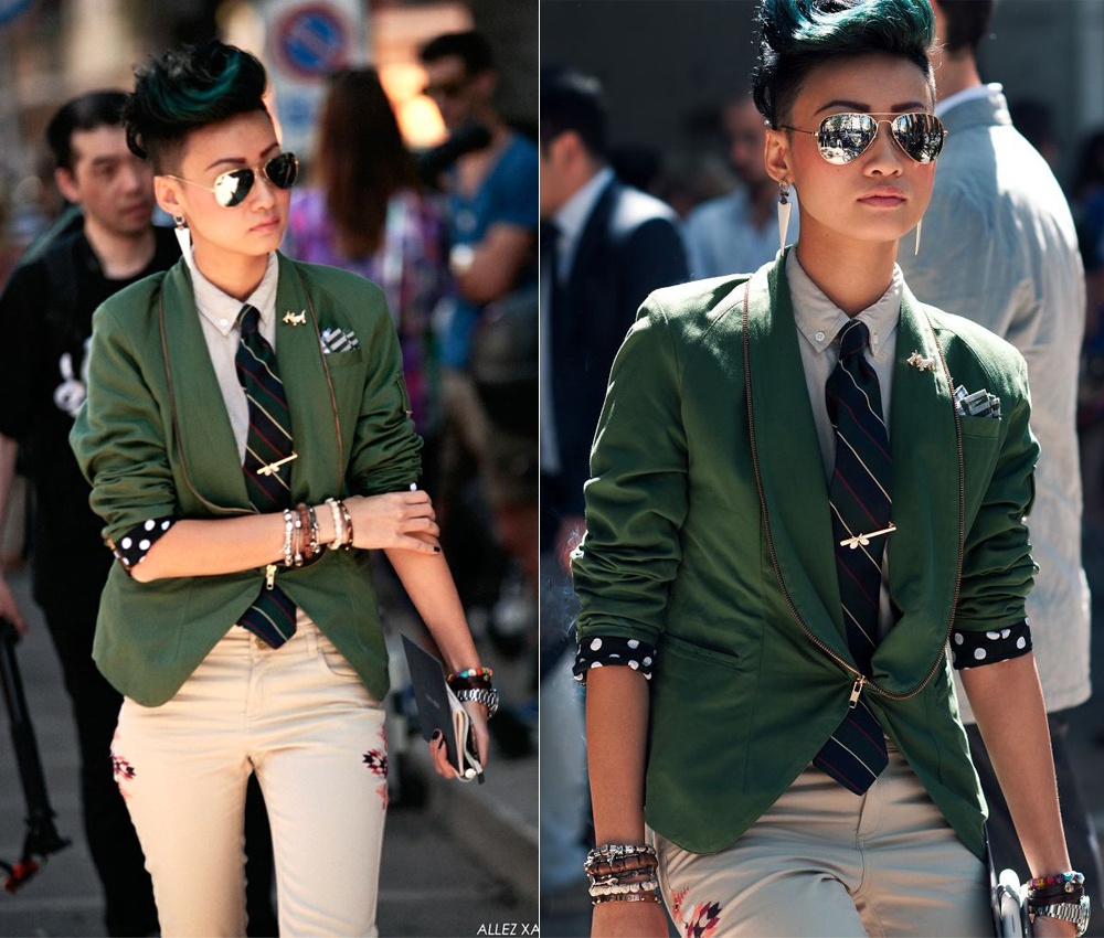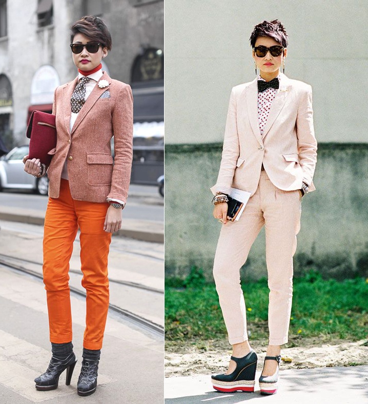 Thời trang menswear đang rất được các fashionista nổi tiếng thế giới - như Sarah Ann Murray, Nicole Xu, Janie Cai, Esther Quek - ưa chuộng.