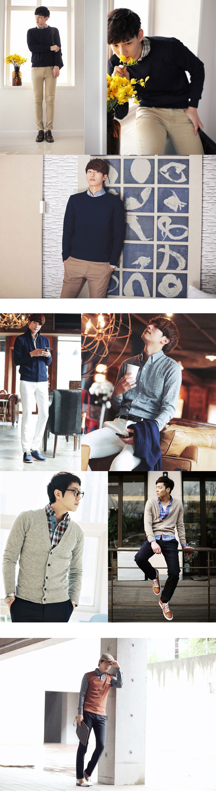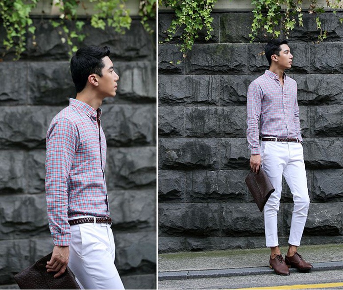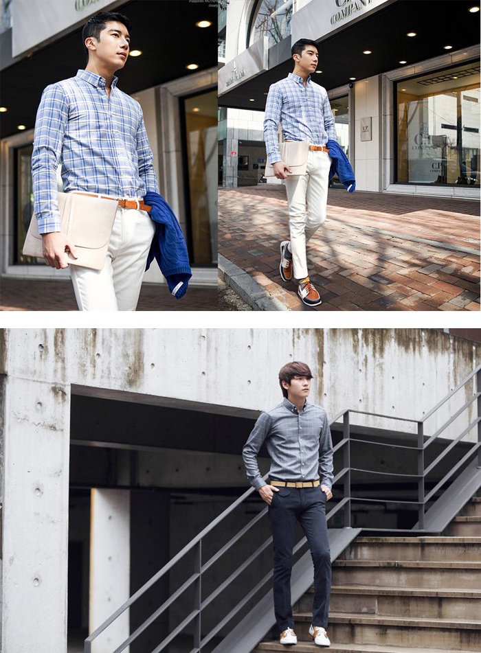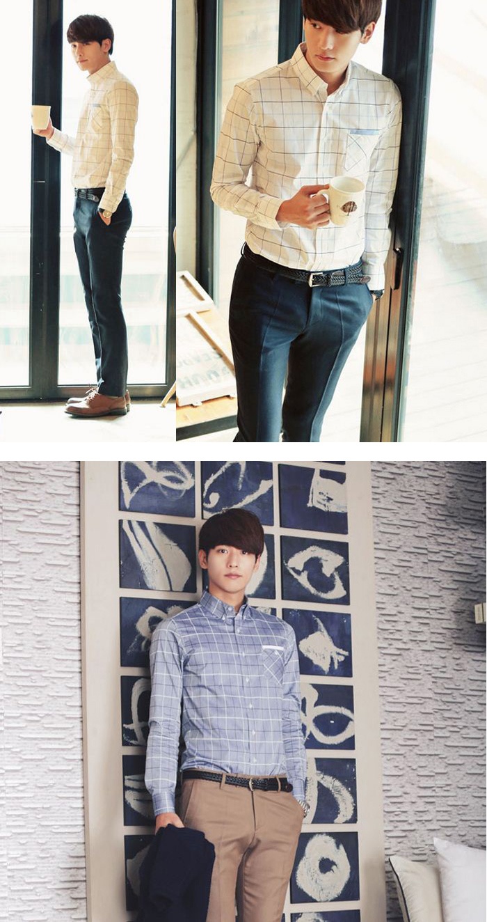 | Bạn hãy xem anh chàng thanh lịch xứ kim chi mang sơ mi kẻ ca rô đến công sở như thế nào nhé. Vận dụng nét đẹp cổ điển của những chiếc áo sơ mi vintage, với những gam màu nhẹ nhàng như đen trắng, xanh trắng…, phối cùng quần kaki dáng ôm vừa sẽ giúp các chàng trông rất lịch sự mà lại vô cùng cuốn hút. |
