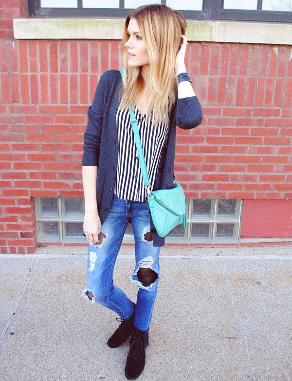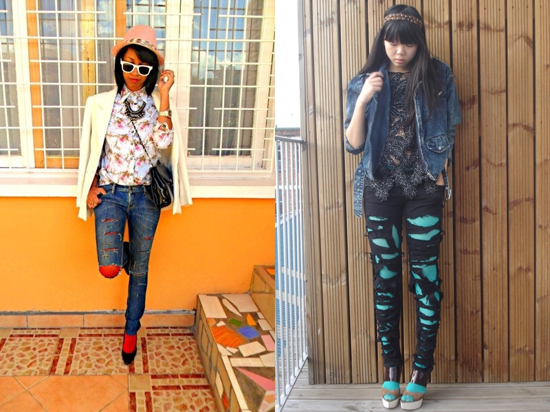 Loại quần quen thuộc này thường được phối với chân váy trong những ngày lạnh nhè nhẹ. Tận dụng quần tất mỏng mix với jeans rách là gợi ý hoàn hảo cho cô nàng nữ tính, làm tiết giảm chất bụi cá tính của jeans.