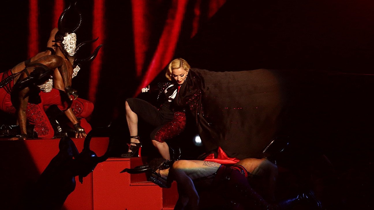 | Cú ngã của Madonna diễn ra trong lúc cô đang trình diễn ca khúc Living for Love. |
