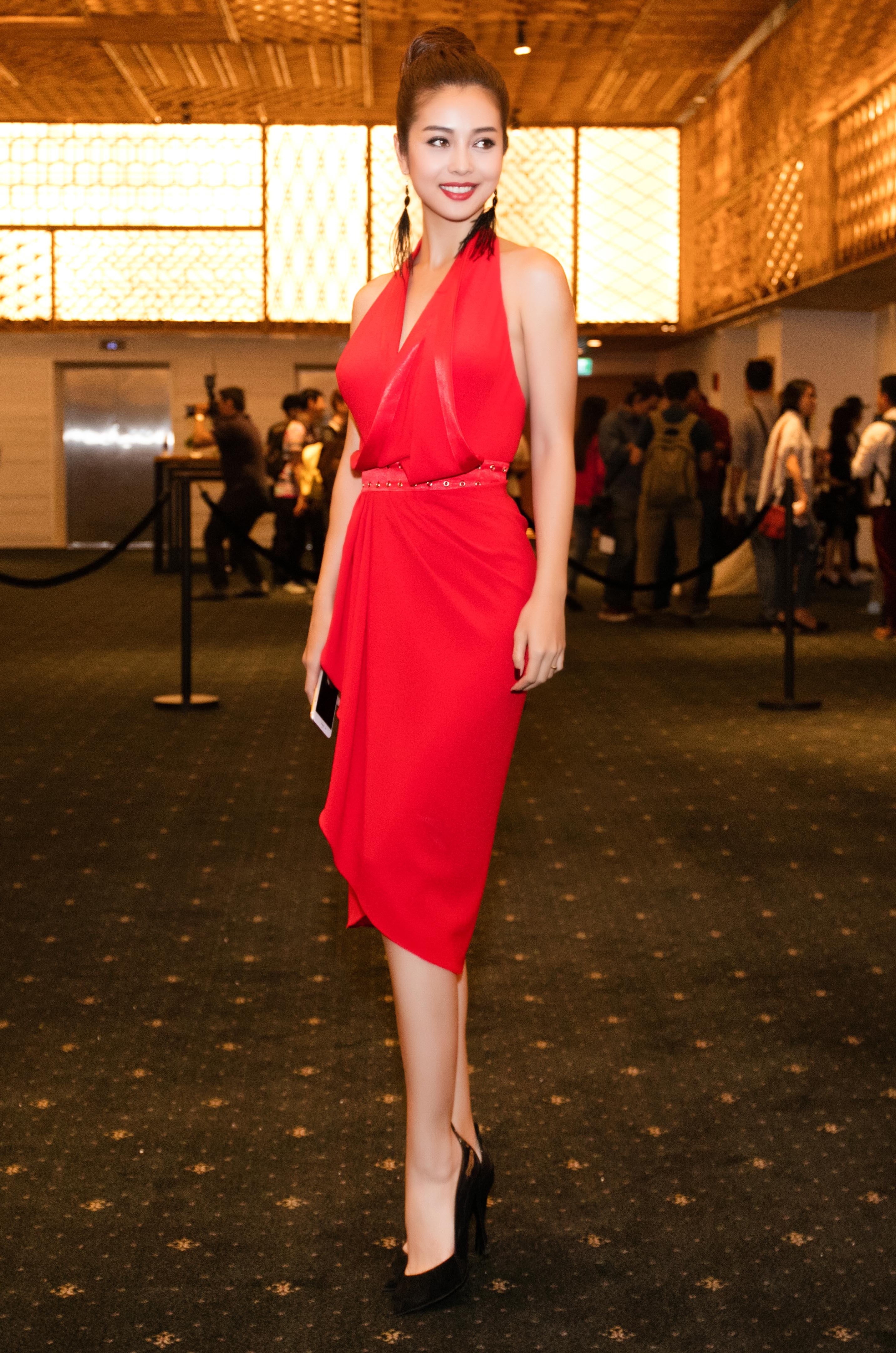 | Mai Phương Thúy giữ vững phong độ thời trang ở tuần này. Hoa hậu dự họp báo Bước nhảy hoàn vũ 2016 với bộ đầm tông đỏ nổi bật, điểm nhấn khoét ngực sâu gợi cảm. Ngoài ra, cô còn làm mới phong cách với lối trang điểm đậm. Ảnh: Tiên Nguyễn |